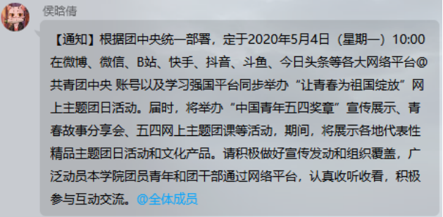 五四青年节之际,为激励广大青年党员时刻牢记习近平总书记嘱托,继承和发扬五四精神,8827太阳集团官网本科生党支部于2020年5月4日通过观看网上直播的形式开展“让青春为祖国绽放”线上主题党日活动。