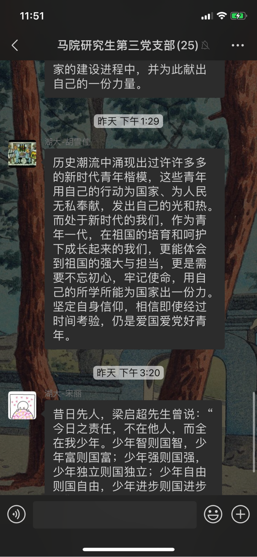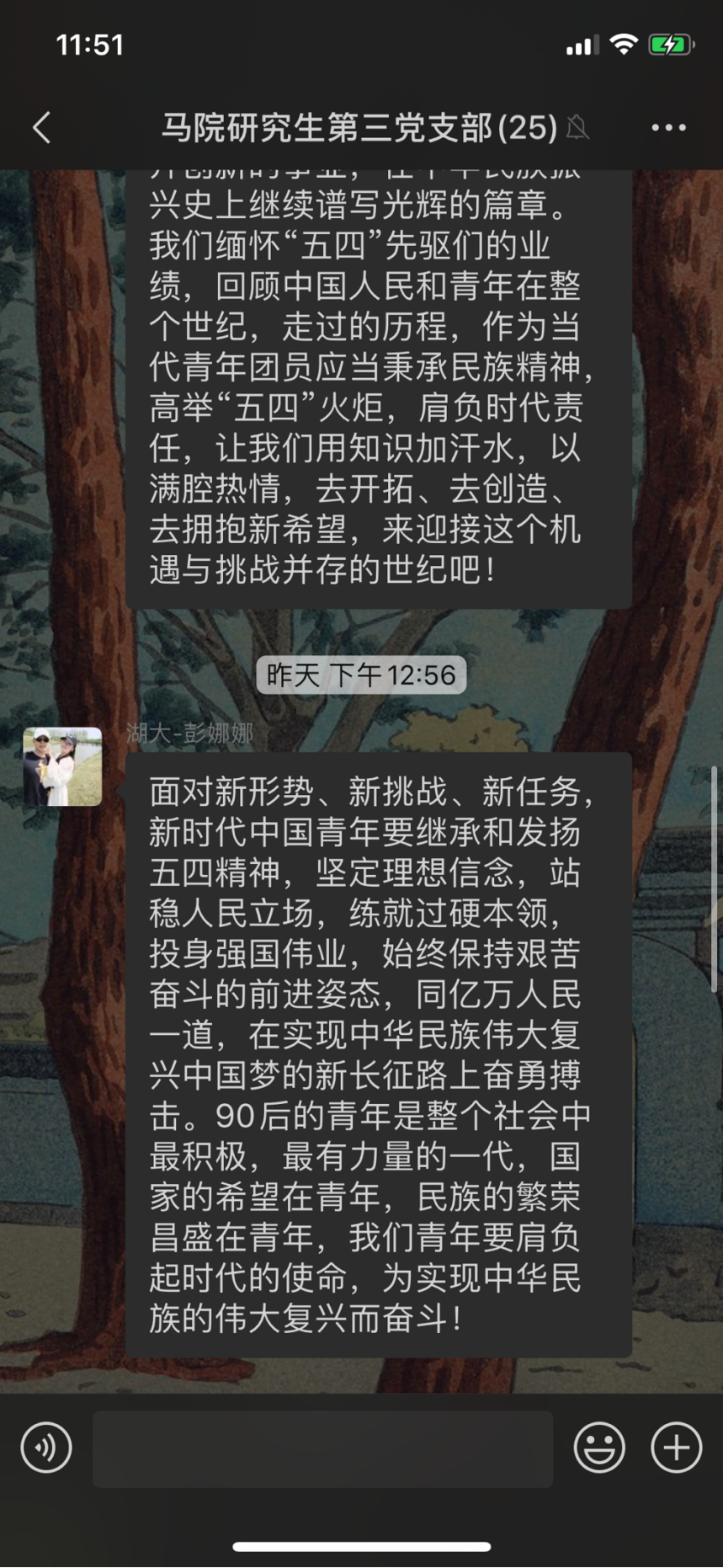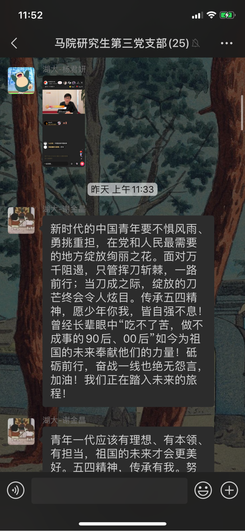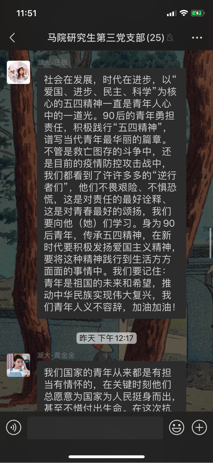 为激励和引领广大青年时刻牢记习近平总书记嘱托,不惧风雨、勇挑重担,自觉在党和人民最需要的地方贡献力量、绽放青春,2020年5月4日,8827太阳集团官网研究生第三党支部组织观看由共青团中央举办的“让青春为祖国绽放”网上主题团日活动。在观看直播的过程中,支部党员真学习视频所讲内容,对五四精神有了更深层次的感悟。
