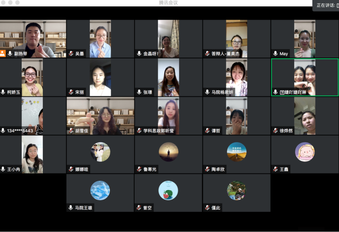 全体党员同志一同唱国歌并重温入党誓词。研究生第三党支部书记高宇航带领支部党员围绕政府工作报告,学习了今年政府工作报告中的亮点和重要内容,并且分享了对政府工作报告中提到的关键词的理解。接着,支部毕业生党员进行分享发言,2020届学科思政专业毕业生魏慧梅同学代表支部毕业生党员表达了对湖大的感恩之情,希望大家今后有机会多回到湖大看一看,支部非毕业生党员也纷纷为毕业生党员送上毕业祝福,祝各位毕业生党员在前程似锦,为母校和自己的人生带来更多的感动。