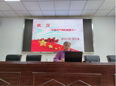 5月26日下午,公司党史学习教育宣讲报告会暨“党史大家谈”系列活动(四)在公司410报告厅举行。公司党史宣讲团成员、党史研究专家田子渝教授作了题为“武汉——中国共产党的摇篮之一”的主题报告,全院教职工和员工党员参加学习。会议由公司经理熊友华教授主持。