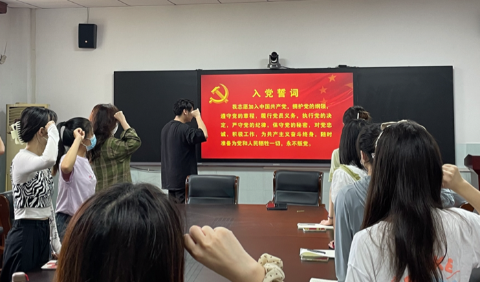 会议伊始,刘传禹同志表达了对于新生党员的欢迎以及殷切期盼,并带领全体党员重温入党誓词,对着党旗宣誓,集体朗读党章,加强对党章的学习感悟。