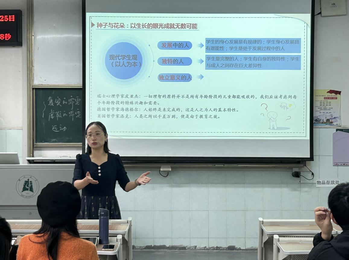 10月25日上午,武汉市第三中学思想政治课优秀教师陈丽老师应邀为为公司2022级学科教学(思政)研究生作题为“做一根思想的苇草”的专题讲座,给即将步入教师岗位的同学们传授实际教学经验。22级学科思政研究生全体同学参加此次讲座。讲座由程亚勤老师主持。