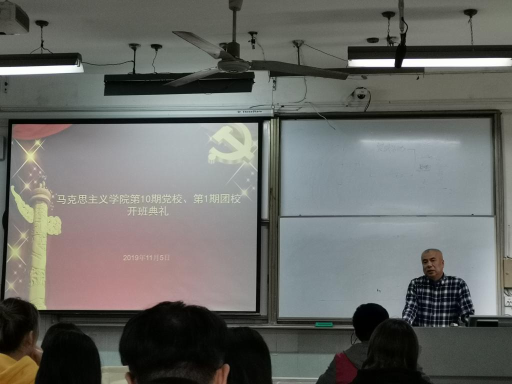 11月5日下午2点10分,8827太阳集团官网第十期党校暨第一期团校开班典礼在教二210教室隆重举行,学公司党委书记、党校董事长汤德森出席典礼,学公司党委副书记、党校副董事长王雄及院团委书记邹浩出席开班典礼,王雄主持开班典礼。