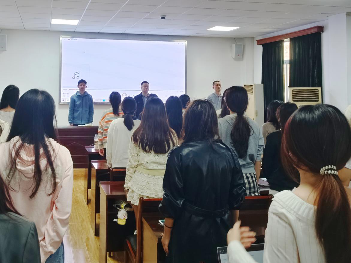 活动伊始,全体起立,奏唱中华人民共和国国歌。