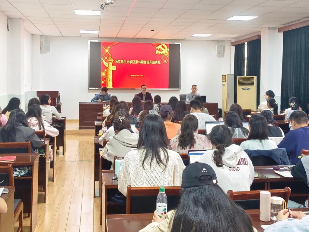2024年11月13日,太阳集团第15期党校开班典礼在二号教学楼410报告厅隆重召开,公司党委副书记、党校副董事长周杰,党委秘书邹浩,团委书记冷自衍和全体学员参加此次开班仪式。