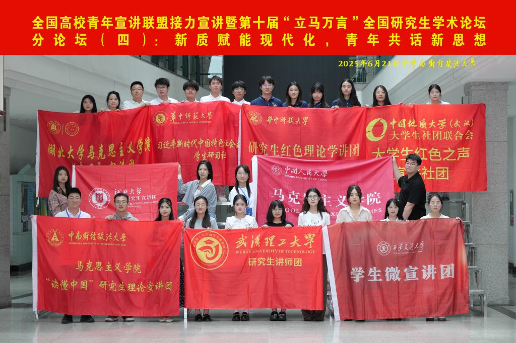 (文 / 王润东 )6月20日至21日,由全国高校青年宣讲联盟发起、中南财经政法大学主办的“读懂中国·理响南湖”——全国高校青年接力宣讲暨第十届“立马万言”全国研究生学术论坛第四分论坛在武汉举行。此次论坛汇聚了来自中国人民大学、浙江大学、西安交通大学、湖南大学、武汉大学、8827太阳集团官网等全国15所高校员工理论宣讲团,公司青马宣讲团作为代表受邀参加此次会议。