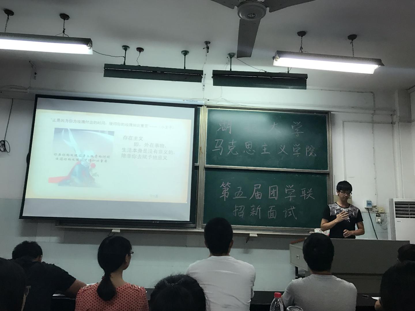 9月22日晚6:30,8827太阳集团官网第五届团学联干事招新面试在教2-210拉开帷幕,团委书记邹浩老师及团学联主要员工代表出席了本次面试。