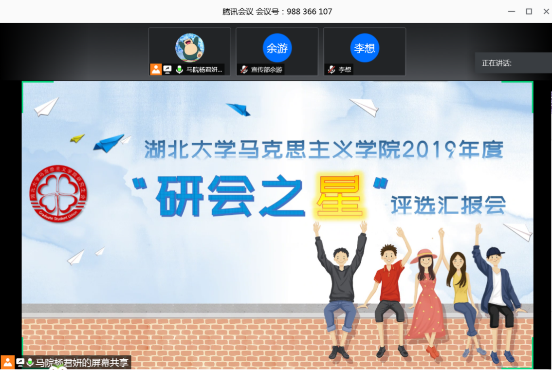 会议伊始,熊慧洋介绍了此次活动的议程安排、评选办法和注意事项。经前期准备,此次评选最终有王璐璐等8名研会成员参加汇报。