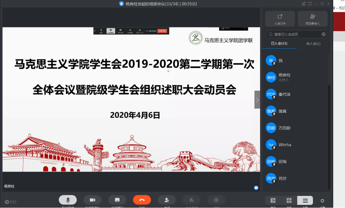 4月6日晚七点,公司员工会2019——2020第二学期第一次全体会议暨院级员工会组织述职大会动员会于线上如期举行。各分管主席即部门代表参加了大会。会议由院员工会主席杨良柱主持。