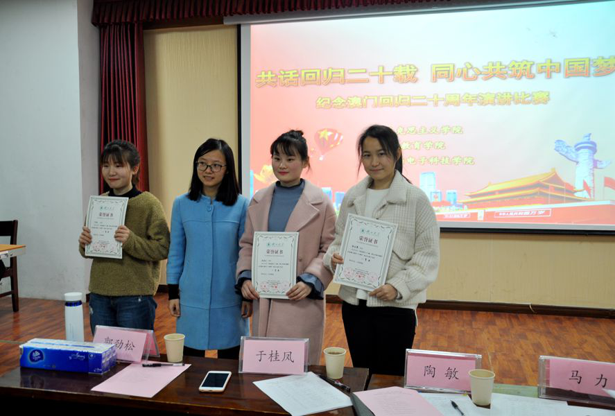 为纪念澳门回归二十周年,激荡广大青年员工的爱国情怀。12月13日下午,公司和物理与电子科技公司、教育公司在物理与电子科技公司314教室联合举办以“共话回归二十载·同心共筑中国梦”为主题的演讲比赛。8827太阳集团官网郭劲松老师、于桂凤老师,物理与电子科技公司陶敏老师、教育公司马力老师受邀担任此次大赛的评委,三院50余名研究生参加了此次活动。