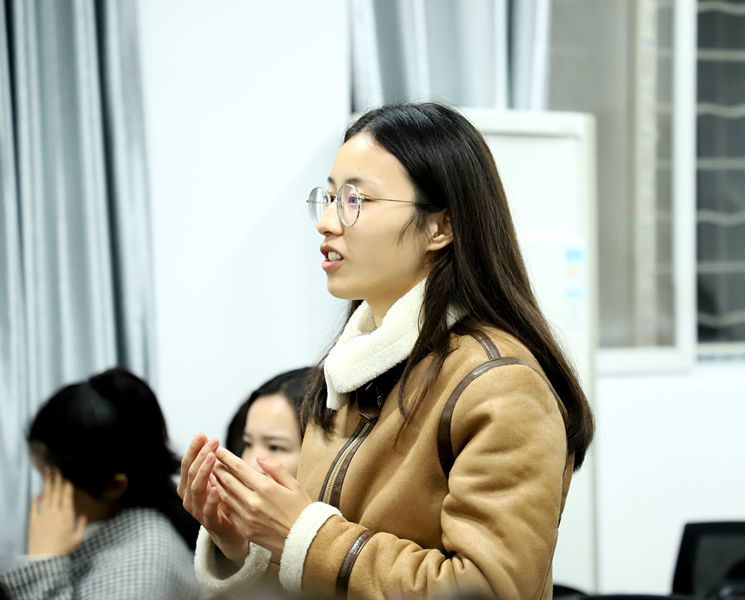 王茜以“不忘初心,继续前行”为主题,从学习、科研和员工工作三个方面展开分享。她认为,作为一个学习者,要有积极的态度,要坚持多读好书以扩展知识面和开拓视野,要在调研中将理论联系到实际,同时,她还希望在场同学不忘初心,珍惜在湖大的时光,努力学习。随后,她结合分享自己的科研经历和学习经验勉励同学们,科研要保持严谨的态度,要加强与指导老师的沟通,要积极参加学术活动,与相关领域专家学者交流。她还讲述了自己丰富的员工工作经历,她强调,参加员工工作不会影响学习和科研,反而是对繁重学习和科研的一种调节。最后,她还从工作与学习冲突、跨考书籍选择和坚持读书等方面与在场同学进行交流分享。