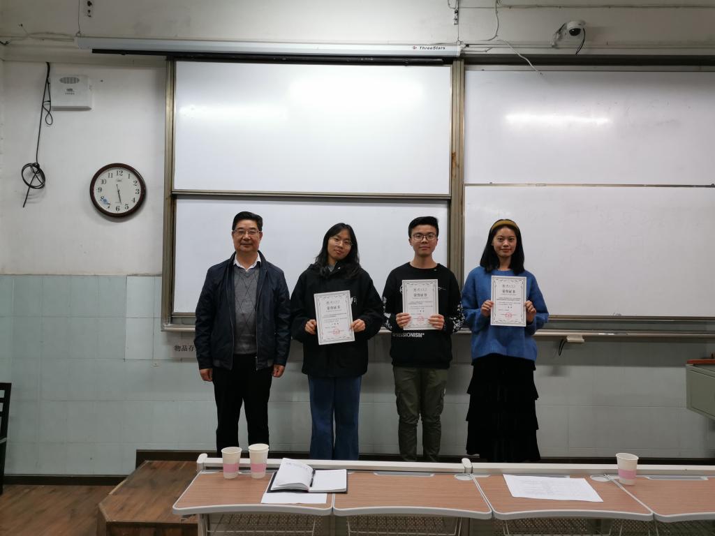 交流会尾声,钱董事长以及邹浩老师为获奖团队颁发证书并合影留念,随后钱董事长发表讲话指出,18级同学要认真学习17级同学的经验,争取2020年暑期社会实践取得更好的成绩!