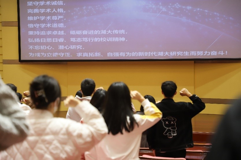 校研究生会主席文炎做开幕汇报。在汇报中,他对往届学术科技节所取得的成果进行了回顾并对即将到来的第五届学术科技节提出展望。随后,他对本届学术科技节的几个阶段做出简要介绍,其中重点向参会人员就活动阶段三个板块进行重点介绍,并对参加本次活动的兄弟高校表达诚挚的谢意。开幕式在员工宣誓中圆满落下帷幕。