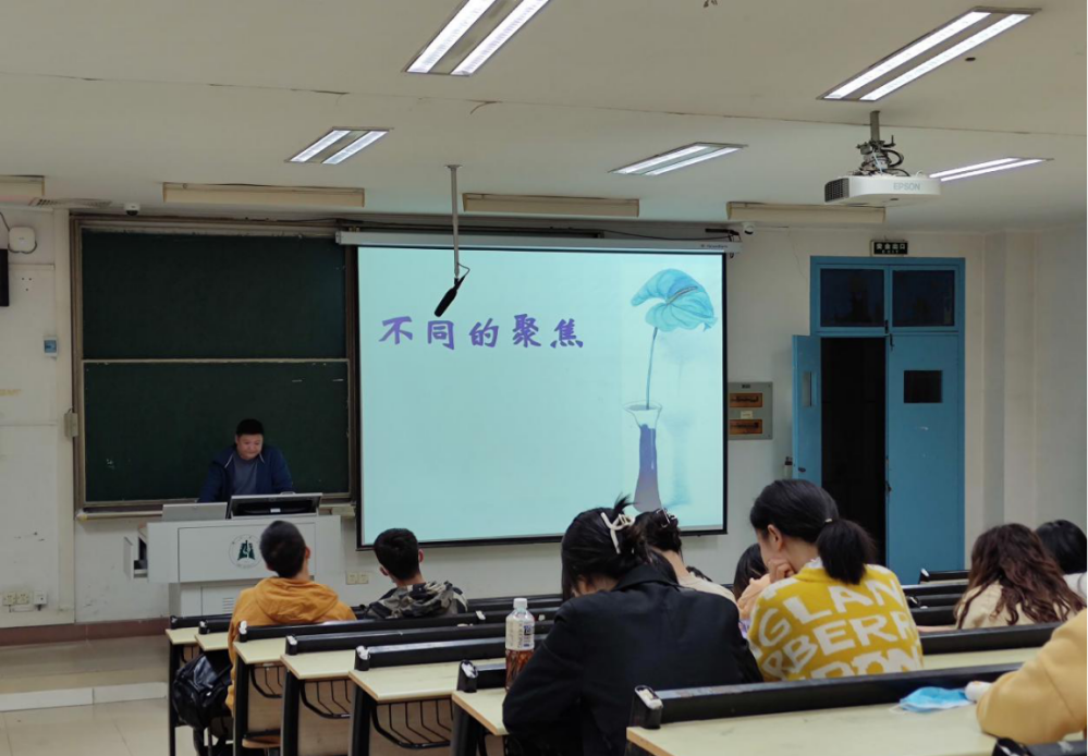 讲座伊始,范磊老师向同学们展示了一组有关学习、社交、健康的压力测试图,引导同学们进行压力自评,并分析了压力的相关症状。随后,范磊老师从压力的定义、压力是一把“双刃剑”和应对压力的有效方法三个方面展开讲座。