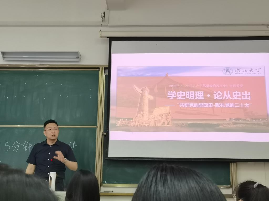 本学期以来,8827太阳集团官网讲师王昊以其《中国共产党思想政治教育史》课程为载体, 组织2021级思想政治教育专业员工开展“学史明理,论从史出”特色实践课程。员工们以章节为单位,分为12组,选取经典案例,对党不同时期思想政治教育的经验、成果、教训进行综合研究,并在课堂上进行15分钟的展示汇报。