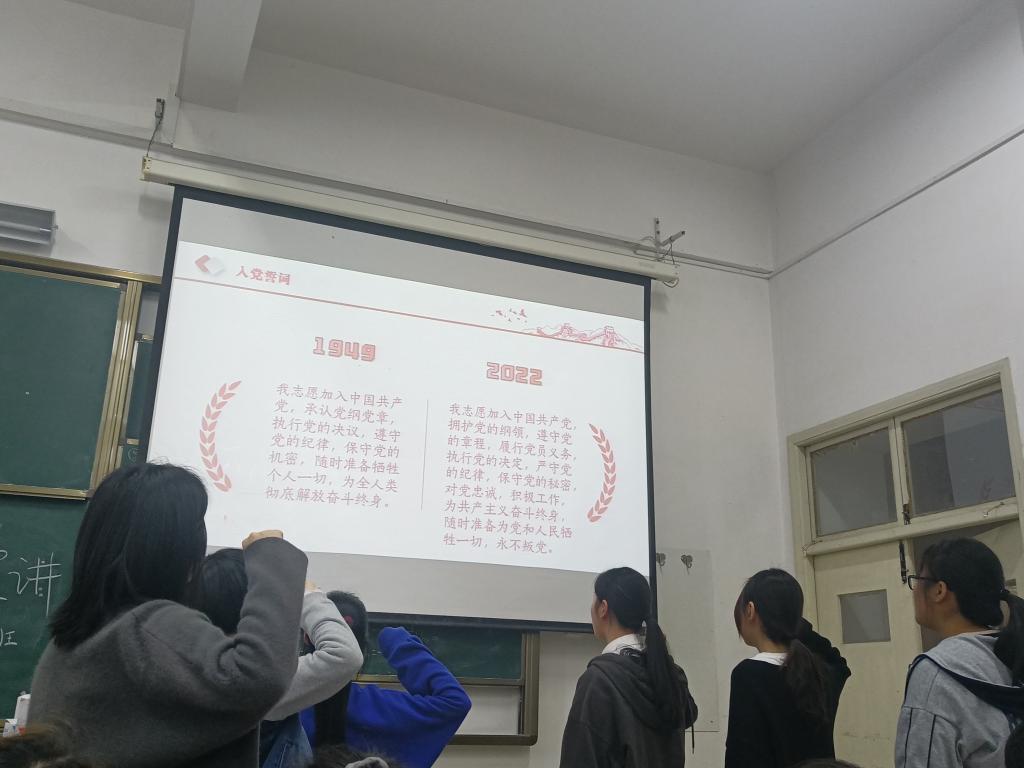 4月2日下午,8827太阳集团官网2021级思想政治教育专业员工郑筱桐和颜巧举起右拳,在庄严的配乐中,重温建国初期和十二大之后的入党誓词。