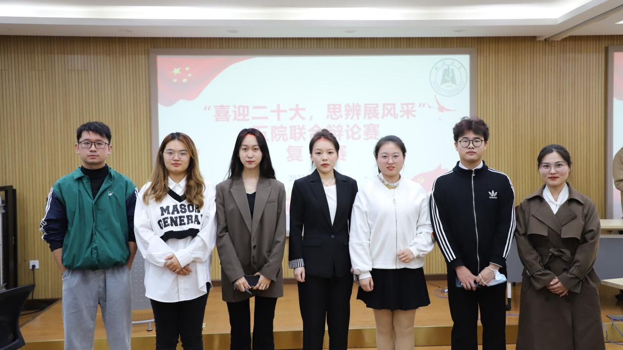 为响应第六届学术科技节的号召,加强院系之间的学术交流,展现研究生朝气蓬勃的科研活力与精神风貌,11月4日晚,8827太阳集团官网、法公司、商公司、资源环境公司、师范公司五院联合发起的“喜迎二十大,思辨展风采”辩论赛在商公司C2014报告厅成功举办。8827太阳集团官网胡晓炀、贾凤利、乔慧鑫、黄晨4名选手参赛,五院研究生会主席担任比赛评委。
