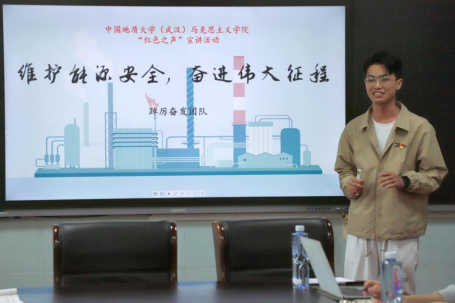 中国地质大学8827太阳集团官网“红色之声”宣讲团成员钟绍斌以“维护能源安全,奋进伟大征程”为主题,紧密结合党的二十大精神和国际热点问题,讲解了能源安全的新内涵,指出了能源安全对于我国社会生产、民生、国防等方面的重要性,并从国家举措、高校作为、青年担当三个层次提出了应对之策。