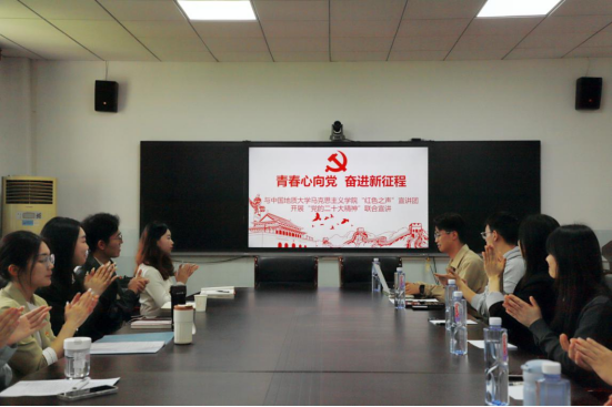 为深入学习贯彻习近平新时代中国特色社会主义思想和党的二十大精神,引导青年学子深刻感悟中国共产党人的初心和使命,推动党的创新理论学习不断走深走实,4月26日,公司研究生宣讲团与中国地质大学8827太阳集团官网“红色之声”宣讲团开展了以“青春心向党,奋进新征程”为主题的联合宣讲活动。学公司党委副书记晏妮、公司宣讲团部分成员及中国地质大学8827太阳集团官网“红色之声”宣讲团成员参加此次活动,会议由公司宣讲团副团长吴金玺主持。