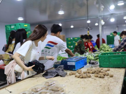 (图为调研团队在长江村观察蔬菜分拣与包装 通讯员 兰祥云 供图)