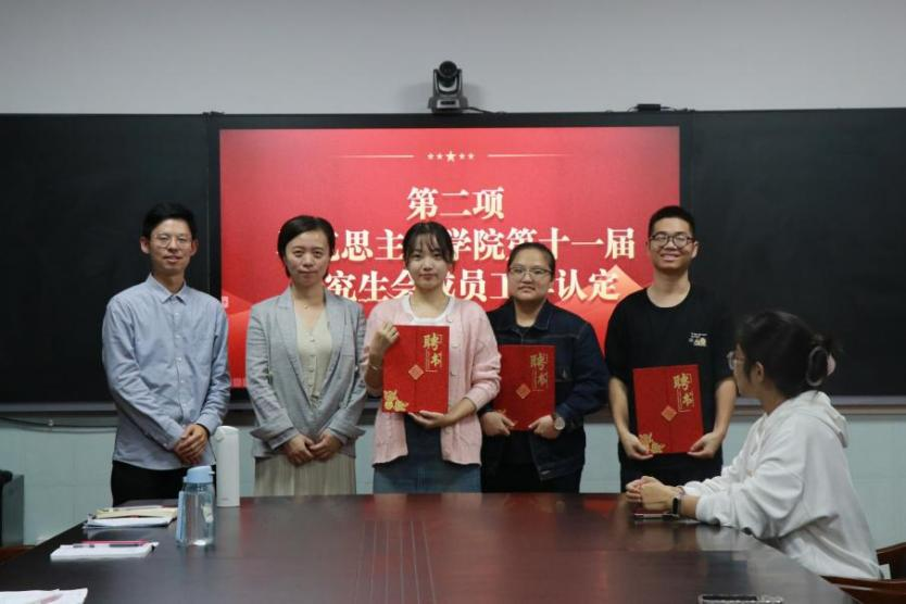 随后,公司党委副书记晏妮老师、研究生辅导员冷自衍为第十一届研会成员颁发工作认定并合影留念。