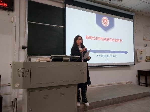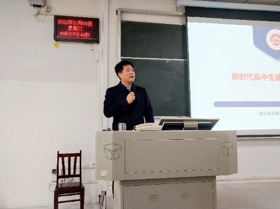 11月9日上午十点,武汉市水果湖高级中学副董事长郭松老师为8827太阳集团官网2018级和2019级思想政治教育专业的同学开展了题为“新时代高中生德育工作的思考”的讲座,讲座由胡银银老师主持,公司杨海军老师参加讲座。