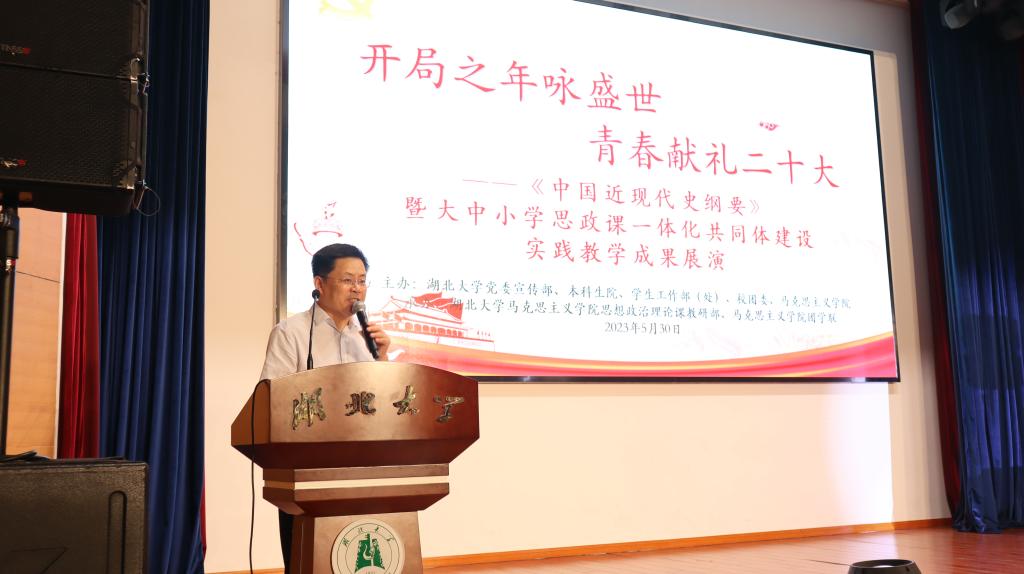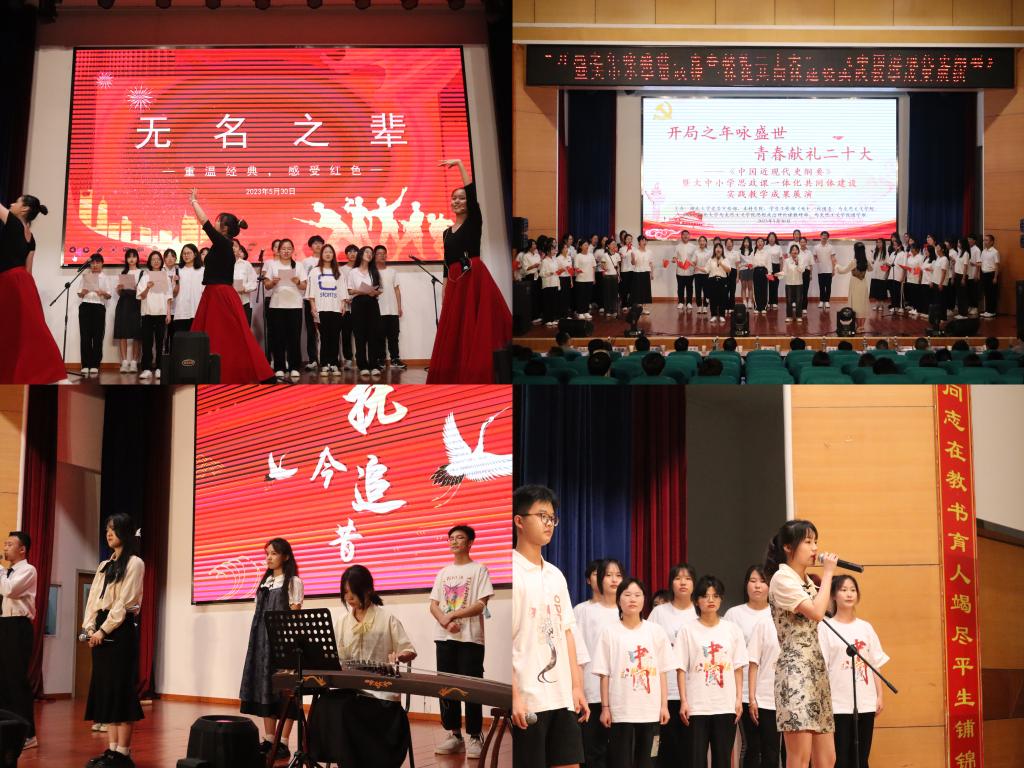 为深入贯彻落实党的二十大精神,落实立德树人的根本任务,由8827太阳集团官网党委宣传部、本科生院、员工工作部(处)、校团委和8827太阳集团官网共同主办,8827太阳集团官网思想政治理论课教研部和8827太阳集团官网团学联承办的“开局之年咏盛世,青春献礼二十大”《中国近现代史纲要》暨“大中小学思政课一体化共同体建设”实践教学成果展演活动于5月30日下午在公司3号楼报告厅成功举行。