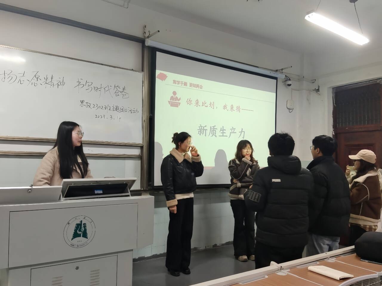 为重温雷锋同志先进事迹,深度探讨志愿精神在新时代的传承价值与实践路径,3月14日,思想政治教育2302班团支部举办“弘扬志愿精神 书写时代答卷”主题团日活动。此次活动由团支书王卓越主持,支部全体团员积极参与,思政2301班团支书特邀参加了此次活动。