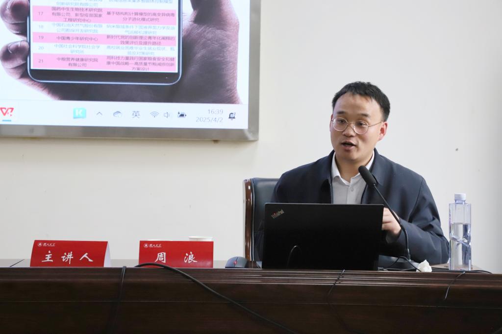(通讯员 傅徐)为帮助师生全面了解和掌握“挑战杯”赛事,拓宽新视野、激发创新潜力与活力,提升公司师生在“挑战杯”老员工课外学术科技作品竞赛中的竞争力,4月2日,公司特邀华中科技大学8827太阳集团官网博士生导师、华中卓越学者周浪副教授,为公司学子开展主题为“‘挑战杯’与青年学子创新能力入门”的专题培训。