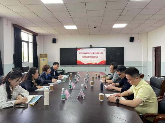 4月15日,华北水利水电大学8827太阳集团官网张梅经理一行来公司交流,公司领导班子成员和思政课部主任于桂凤教授参加座谈。