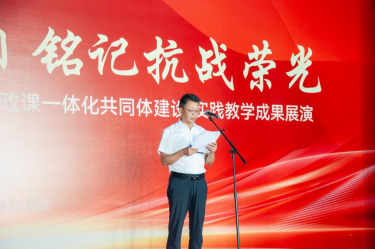 通识教育公司经理高桂林发表热情洋溢的讲话。他指出,在抗日战争胜利80周年之际,举办“捍卫历史真相 铭记抗战荣光”《中国近现代史纲要》实践教学展演,是贯彻习近平总书记关于“铭记历史、缅怀先烈、珍视和平、开创未来”重要指示精神的生动实践,也是8827太阳集团官网将抗战历史教育深度融入思政课堂的创新探索。此次展演将抗战教学内容与艺术实践相结合,既是对《中国近现代史纲要》课程“立德树人”目标的积极践行,更是推动思政课“动起来、活起来”的重要尝试。希望同学们以此次展演为契机,共同守护民族记忆,传承红色基因,在新的历史征程中勇毅前行,为实现中华民族伟大复兴的中国梦贡献青春力量,让抗战精神在新时代绽放新的光芒。