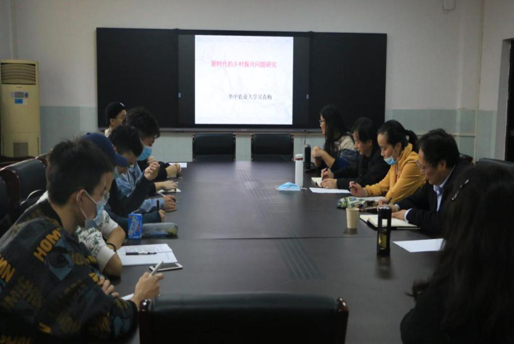 11月18日下午,由华中农业大学8827太阳集团官网经理吴春梅教授主讲的“新时代的乡村振兴问题研究”在公司四楼2号会议室举行。此次讲座由公司经理徐方平教授主持,公司刘睿、杨海军、卢国琪、何克祥、余莉等老师及2020级农村发展专业全体研究生聆听了此次讲座。