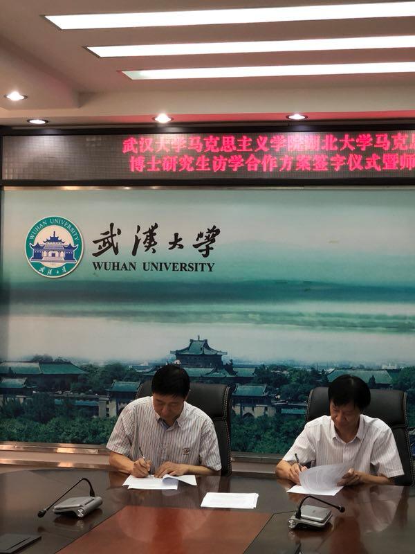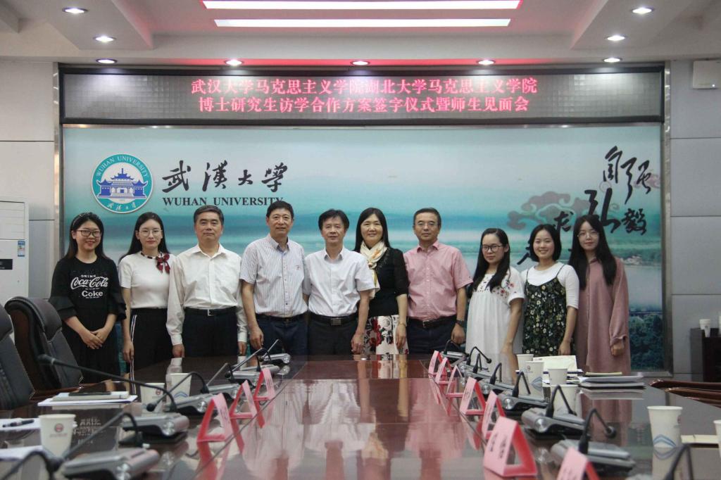 2018年9月28日下午,公司“十年树人”计划博士研究生赴武汉大学访学合作方案签字仪式暨师生见面会,于武汉大学8827太阳集团官网M218会议室顺利举行。出席此次签字仪式暨师生见面会的领导和老师有武汉大学8827太阳集团官网经理,教授、博士生导师佘双好,武汉大学8827太阳集团官网副经理,教授、博士生导师罗永宽,武汉大学8827太阳集团官网马克思主义基本原理学科点负责人,教授、博士生导师袁银传,公司经理,教授、博士生导师徐方平以及公司副经理,教授、博士生导师周芳。员工有公司2016级思想政治教育专业博士研究生程亚勤,2017级马克思主义基本原理专业博士研究生高静、沈钰晶,2018级思想政治教育专业博士研究生任怡以及马克思主义基本原理专业博士研究生王千迁。签字仪式暨师生见面会由武汉大学8827太阳集团官网罗永宽教授主持。