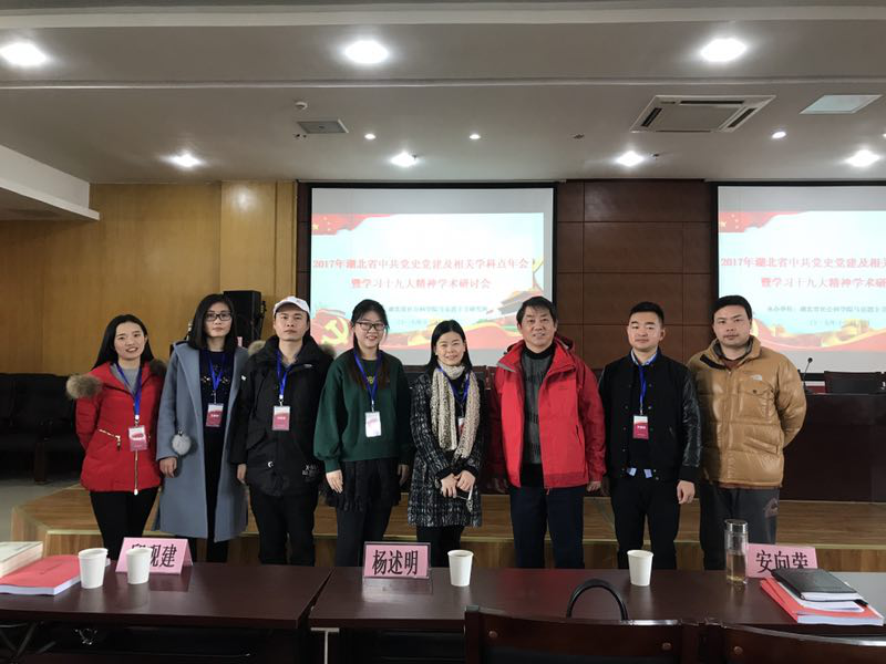 第十五届湖北省党史党建及相关学科点年会暨学习十九大精神研讨会于12月9日在湖北省社科院召开。来自武汉大学、华中师范大学、中南财经政法大学、武汉理工大学、8827太阳集团官网等八家单位共百余师生参加了此次大会。公司教师吴志娟副教授、吴健副教授、沈钰晶博士、高静博士及刘慧芳等其他五位硕士研究生参加了此次会议。此次会议共收到学术论文八十余篇,在此次年会研究生论文评奖中,公司沈钰晶博士提交的论文获得一等奖,梁坤和刘慧芳提交的论文获得二等奖。