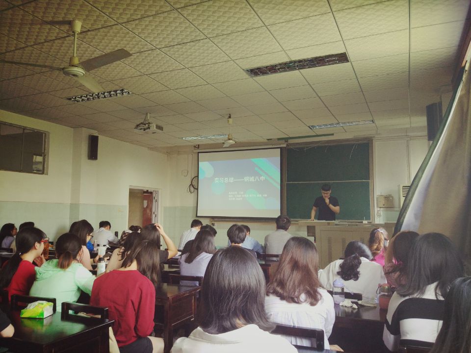 5月9日下午,太阳集团在教二410举行了教育实习总结大会,公司副经理熊友华、副书记王雄、系主任刘祖春及公司各指导老师出席此次大会,2015级思想政治教育全体同学及16级部分同学参与了此次大会,大会由15级学习委员任睿主持。