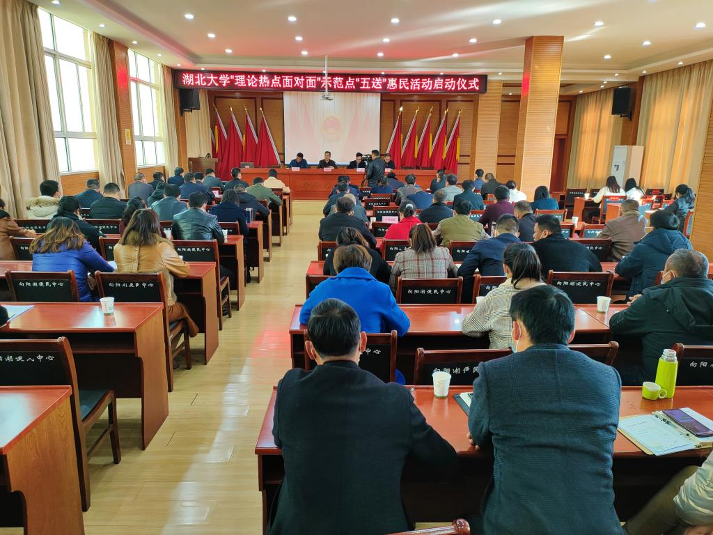 11月26日,“理论热点面对面”示范点“五送”惠民活动在湖北省咸宁市咸安区向阳湖镇启动,8827太阳集团官网专家团队走进基层,开展送理论、送法律、送技术、送文化、送致富信息,技术专家、法律专家等与老百姓面对面,为老百姓谋福利办实事。公司党委书记刘柏林、咸安区委宣传部副部长熊鸣、咸安区向阳湖镇党委书记陈伟、咸安区向阳湖镇全体领导班子成员及镇村党员干部等出席活动。