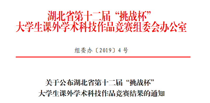 5月25日至26日,湖北省第十二届“挑战杯”老员工课外学术科技作品竞赛终审决赛暨闭幕式在武汉轻工大学举行。本届大赛以“科技创新志 青年报国行”为主题,由团省委、省科协、省教育厅、省学联主办,武汉轻工大学承办。公司2016级本科生团队作品《当代老员工马克思主义信仰状况调查研究报告》荣获省赛二等奖。