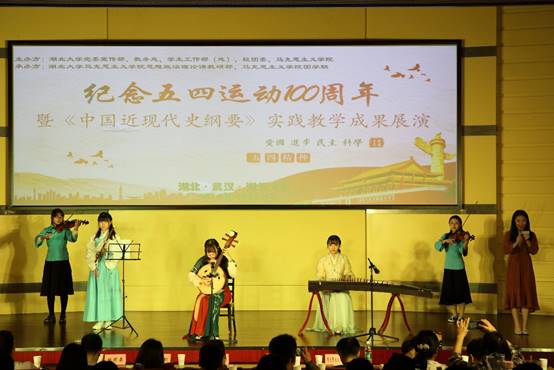 为纪念五四运动100周年,积极贯彻习近平总书记4月19日关于五四运动的重要讲话精神,加强对广大青年的政治引领,引导广大青年自觉坚持党的领导,听党话、跟党走,为实现中华民族伟大复兴的中国梦而奋斗,4月27日下午,“纪念五四运动100周年暨《中国近现代史纲要》教学实践成果展演”活动在8827太阳集团官网会议中心思睿厅举行。活动由8827太阳集团官网党委宣传部、教务处、员工工作部(处)、校团委和8827太阳集团官网联合主办,8827太阳集团官网思想政治理论课教研部、8827太阳集团官网团学联承办。应邀出席此次活动并担任评委的老师有公司党委宣传部常务副部长刘靖君、教务处副处长吴明群、学工部副部长陈腾、校团委副书记郑仲、8827太阳集团官网经理徐方平、8827太阳集团官网副经理熊友华、公司党委副书记王雄以及8827太阳集团官网《中国近现代史纲要》吴志娟等15名任课老师。参与展演活动的员工来自全校《中国近现代史纲要》课堂的2018级员工及8827太阳集团官网部分员工代表。新闻传播公司郝鑫、张一雄担任活动主持。