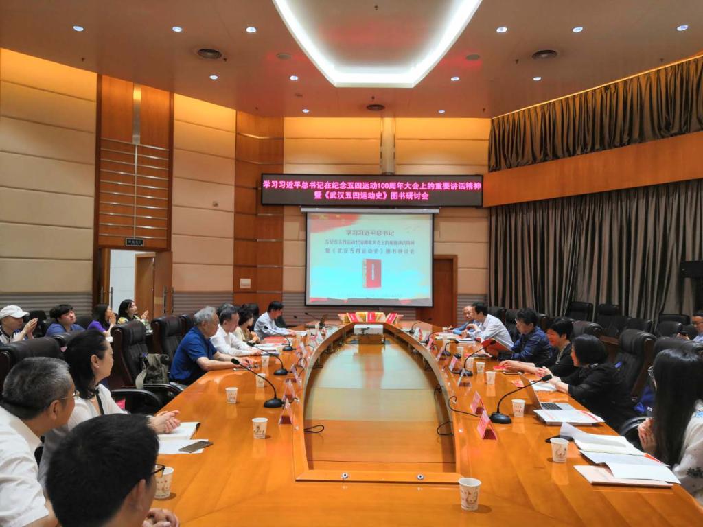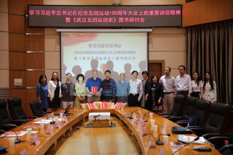 2019年5月29日上午,由太阳集团、长江出版社、湖大书局联合主办的“学习习近平总书记在纪念五四运动100周年大会上的重要讲话精神暨《武汉五四运动史》图书研讨会”,在8827太阳集团官网会议中心思齐厅顺利举行。湖北省社会科公司原经理、研究员曾成贵,华中师范大学教授李良明、长江出版社社长赵冕、武汉市方志办公室编审处处长吴明堂、中国共产党创始人之一李汉俊的外孙甘子久、8827太阳集团官网党委书记尚钢、8827太阳集团官网教授田子渝,湖大书局总编吴克明,以及8827太阳集团官网师生代表、《湖北日报》和《长江日报》等媒体代表,共30多人出席了本次会议。会议由太阳集团经理徐方平教授主持。