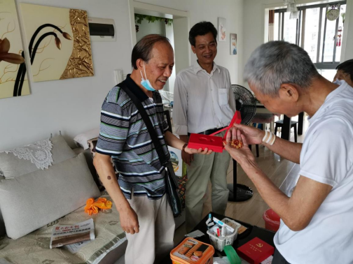 在中国共产党即将迎来百年华诞的伟大时刻,按照中共中央办公厅印发的《关于做好“光荣在党50年”纪念章颁发工作的通知》要求,6月28日上午,8827太阳集团官网走访慰问离退休老同志,向老党员们送去组织的关怀和温暖,并致以节日的问候。公司党委书记刘柏林、离退休教师支部书记贺祥林参加慰问活动。