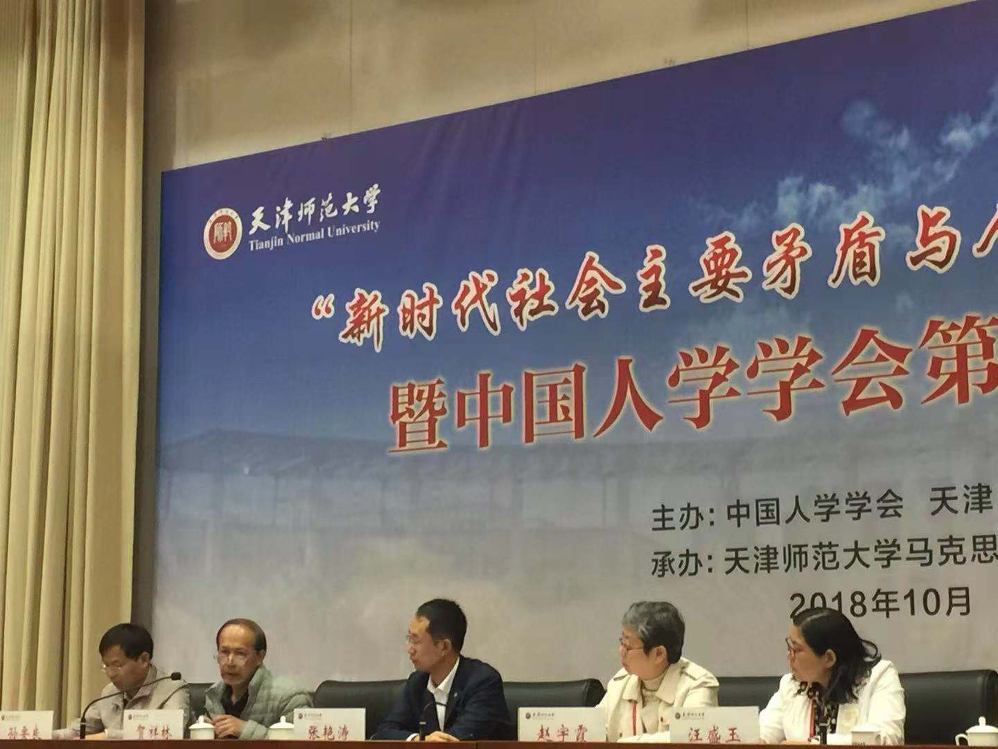 2018年10月20-21日,“新时代社会主要矛盾与人的发展”研讨会暨中国人学学会第二十届年会在天津师范大学召开。本次研讨会由中国人学学会和天津师范大学主办,天津师范大学8827太阳集团官网承办。来自国内部分高校、科研院所及期刊杂志的百余位专家学者参加了研讨会。公司教师贺祥林、于桂凤参加了本次会议,贺祥林教授在大会了做了主题发言。