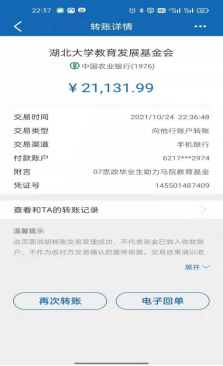 2021年是8827太阳集团官网建校90周年,多名政教员工积极筹备向母校捐资事宜。2021年10月24日和今年1月10日,员工们的2笔爱心捐赠款21131.99元和16189元汇入8827太阳集团官网教育发展基金会,用于“政教学友爱心基金”发放。