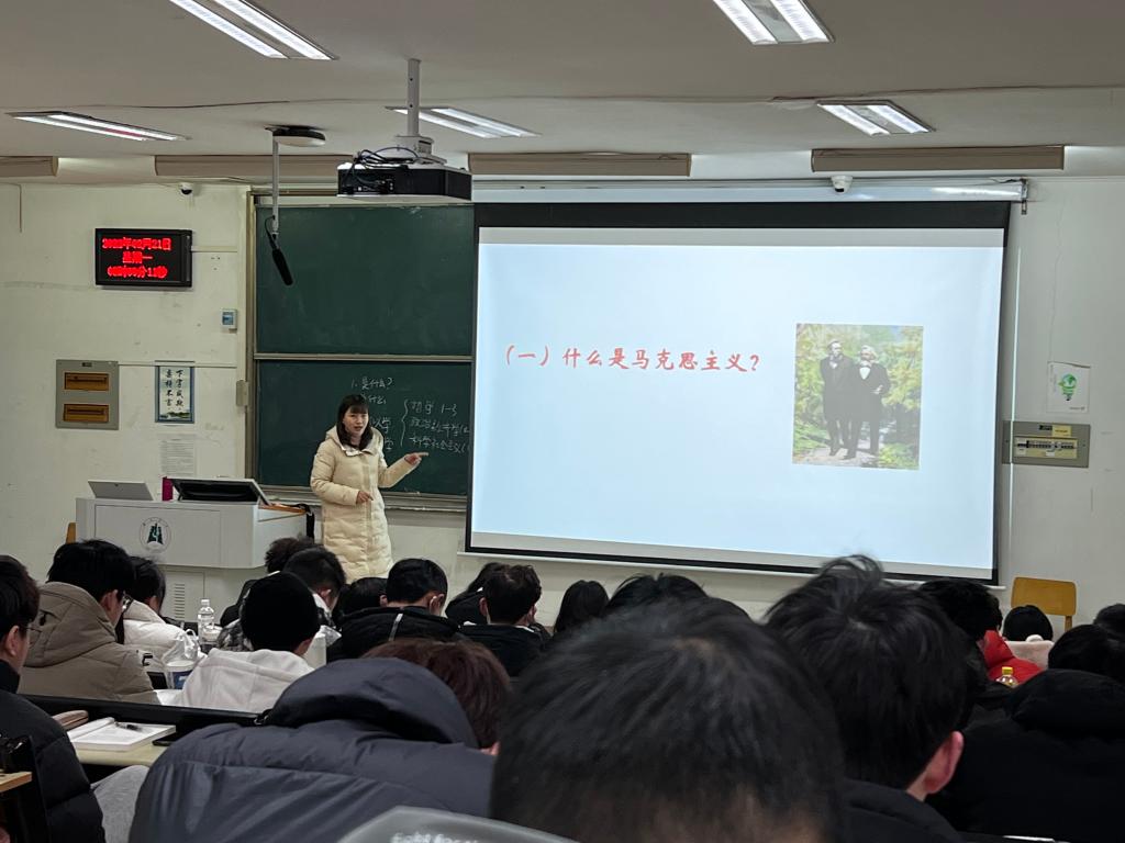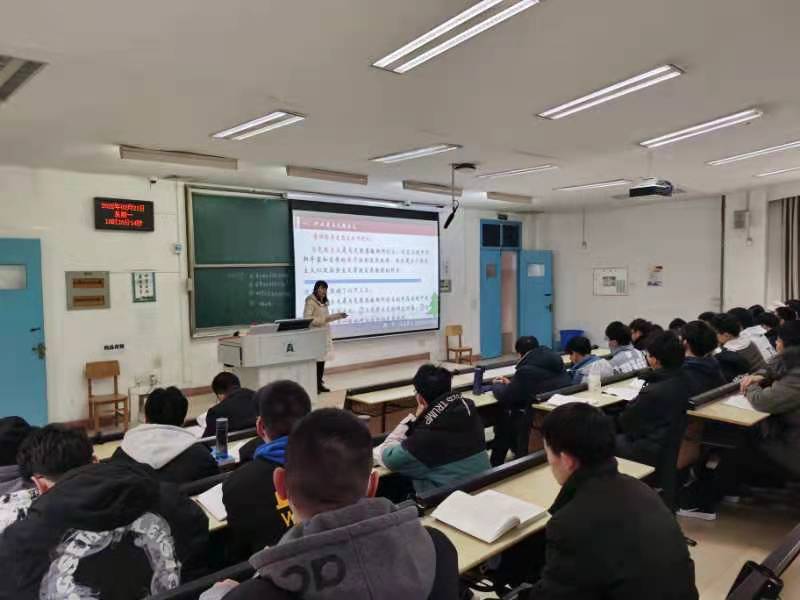 (副董事长钱建国、副董事长肖德、副董事长艾青松在公司侯文文老师的《马克思主义基本原理》课堂上)