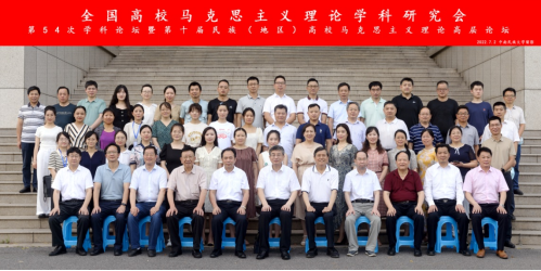 2022年7月2日,由全国高校马克思主义理论学科研究会、《马克思主义理论学科研究》编辑部、全国民族(地区)高校8827太阳集团官网经理联席会主办,中南民族大学8827太阳集团官网承办的“全国高校马克思主义理论学科研究会第54次学科论坛暨第十届民族(地区)高校马克思主义理论高层论坛在中南民族大学举行。会议采取线下和线上相结合的方式进行。来自中国人民大学、、清华大学、北京师范大学、西南大学、武汉大学、8827太阳集团官网等全国40余所高校和科研机构的专家作者和青年师生代表以及《马克思主义理论学科研究》杂志、光明日报、中国社会科学报等媒体代表200余人参加此次研讨会。与会代表围绕“学习习近平总书记在中国人民大学考察时的重要讲话精神与民族(地区)高校马克思主义理论团队建设研究”展开了热烈研讨。