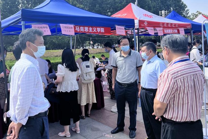 9月4日上午,公司党委书记谢红星,公司党委副书记、董事长刘建平等校领导莅临公司迎新接待站,看望新同学,慰问迎新工作人员,鼓励新同学不负韶华,不负时代,在湖大学有所获,学有所成,嘱咐迎新工作人员注意个人防护与安全。