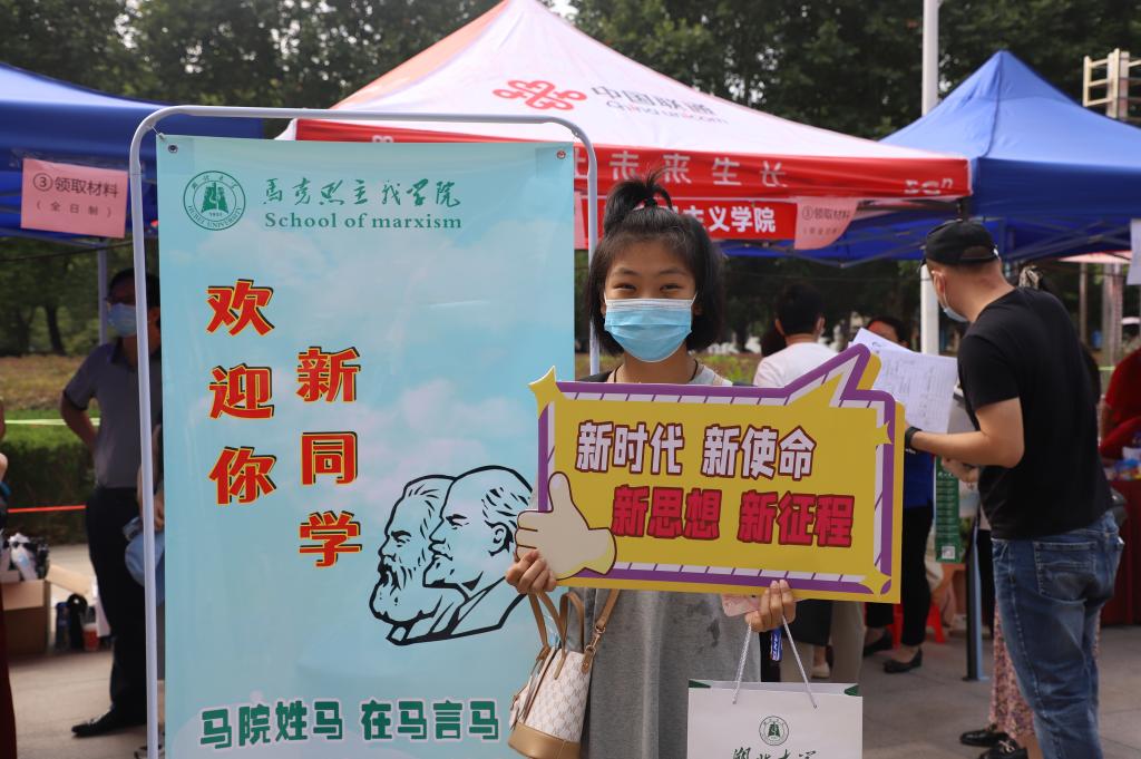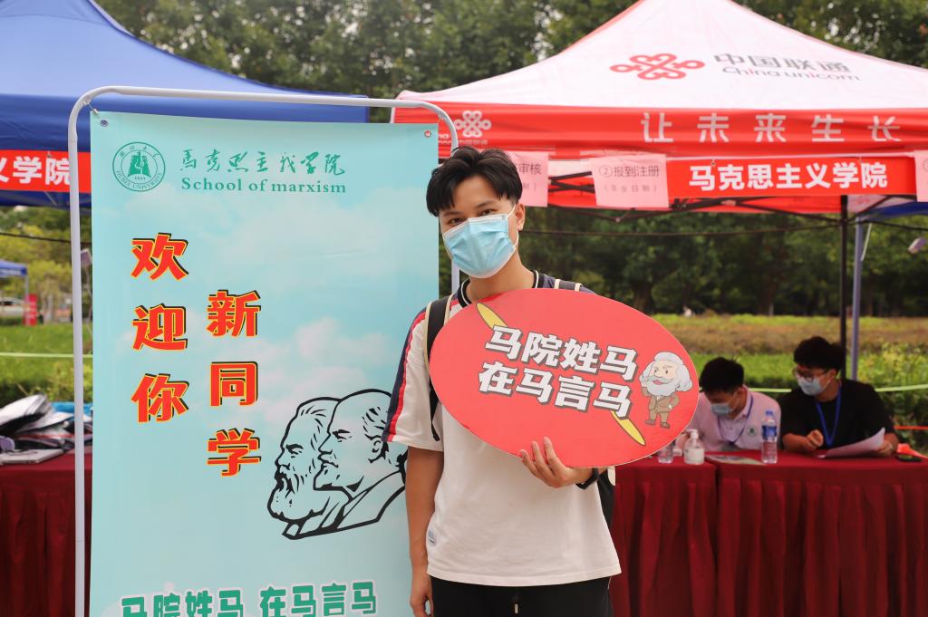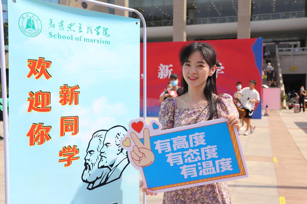 参与引导的老师和同学们精神饱满,热情迎接新同学的到来。公司在帐篷旁设置打卡处,新生手持“马院姓马,在马言马”、“有高度、有态度、有温度”、“新时代新使命、新思想新征程”等手持牌拍照留念,留下初到湖大时的美好瞬间。新生们按照流程完成报到手续后,在志愿者的帮助引导下前往宿舍办理入住手续。