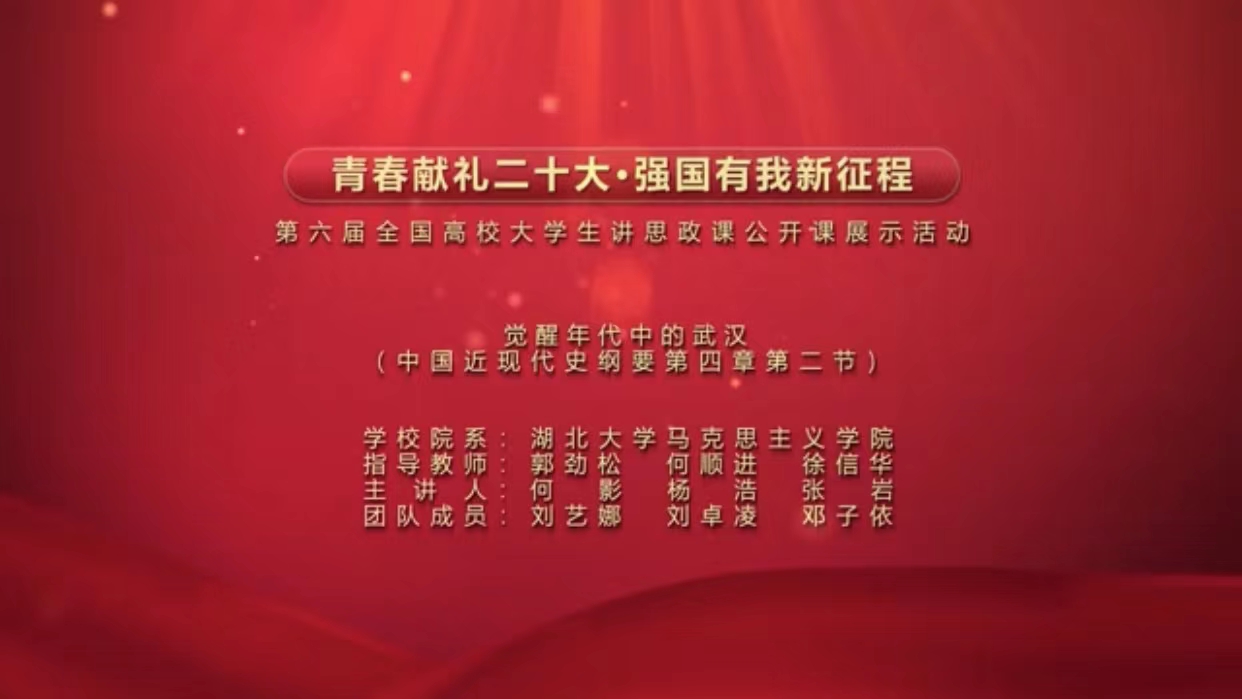 由郭劲松、何顺进、徐信华担任指导教师,何影、杨浩、张岩、刘艺娜、刘卓凌、邓子依等员工主讲的“觉醒年代中的武汉”在本次赛事中荣获一等奖。参赛团队以“中国近现代史纲要”课第四章第二节“马克思主义广泛传播与中国共产党诞生”的内容为基础,围绕武汉地区早期红色历史人物、革命历史事件,反复打磨教学稿件,采用行走的思政课的教学形式,以多个武汉红色革命遗址为场景,实地讲解了觉醒年代里武汉先进知识分子蜕变为马克思主义者,建立中共武汉早期组织,传播马克思主义以及组织发动员工运动和工人运动的史实,旨在促进青年老员工理解伟大建党精神、守好红色根脉、树立强国有我之志。
