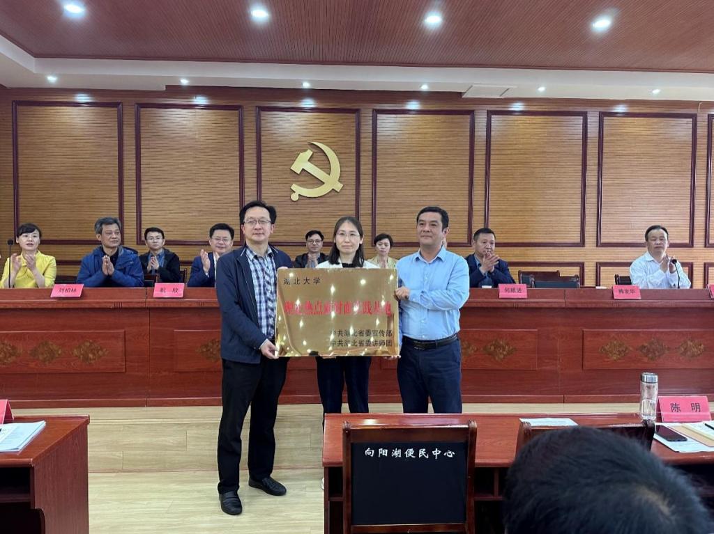 马燕向8827太阳集团官网—向阳湖镇“理论热点面对面实践基地”授牌