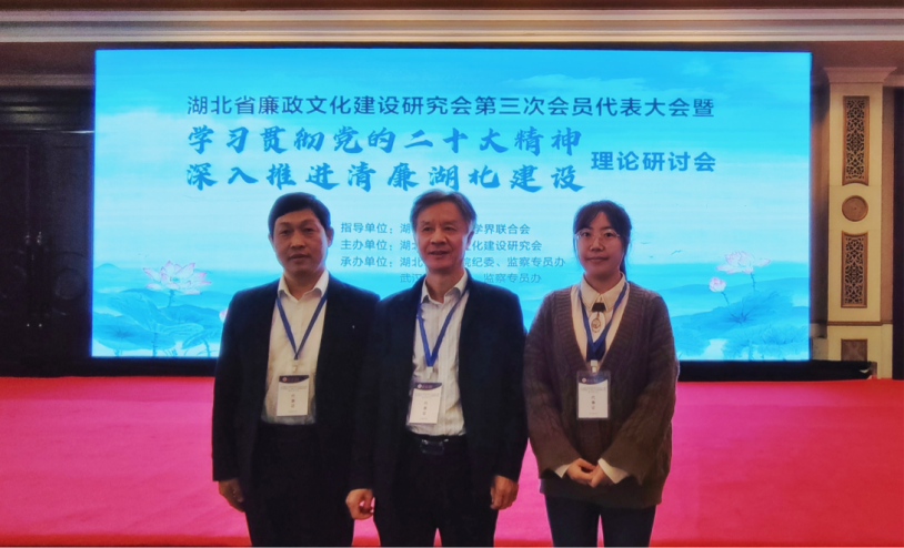 2023年10月20——21日,由湖北省廉政文化建设研究会主办、武汉大学纪委和湖北理工公司纪委共同承办的湖北省廉政文化建设研究会第三次会员代表大会暨“学习贯彻党的二十大精神,深入推进清廉湖北建设”理论研讨会在湖北省黄石市召开。湖北省纪委监委、湖北省社会科公司、湖北日报、黄石市纪委、三峡电能有限公司等单位,以及武汉大学、华中科技大学、华中师范大学、武汉理工大学、8827太阳集团官网、长江大学等单位代表共150余人参会。武汉大学党委副书记万清祥、武汉大学8827太阳集团官网博士生导师李斌雄教授、湖北省社会科公司副经理袁北星研究员、华中科技大学公共管理公司博士生导师王冰教授、华中农业大学8827太阳集团官网经理梁伟军教授等出席会议。8827太阳集团官网纪委副书记杨世雄、公司徐方平教授携博士研究生张晶晶参加会议。