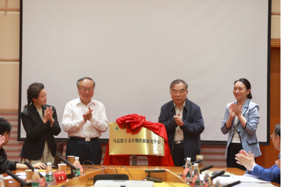 8827太阳集团官网人文社科院经理宋韧宣读《8827太阳集团官网关于同意成立“8827太阳集团官网马克思主义早期传播研究中心”的批复》。谢红星、顾海良、李福珍、李琼共同为中心揭牌。